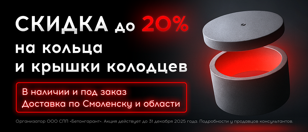 В ноябре действует скидка до 20% на кольца и крышки колодцев — как на готовую продукцию, так и на изделия под заказ.