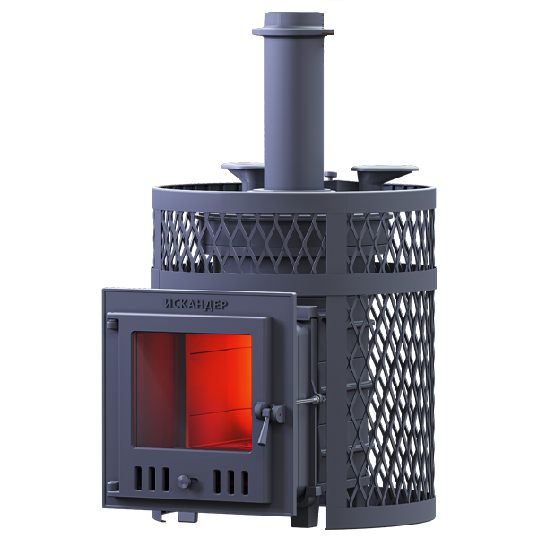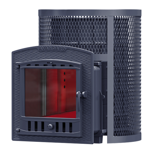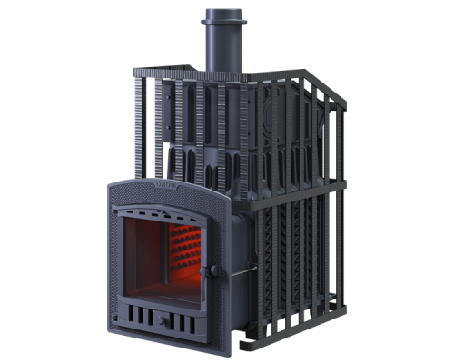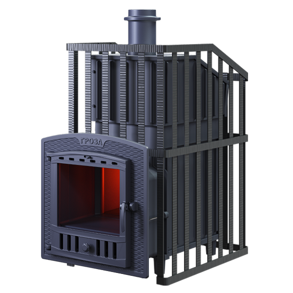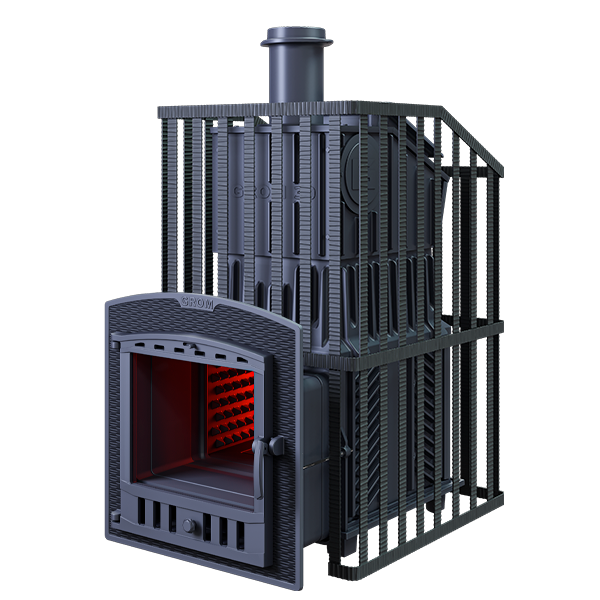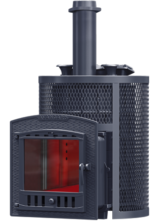 GFS ЗК 30 (М) Ураган - расширенный комплект печи GFS-ЗК в сетке. Максимально приближенный вариант печи для режимов русской парной, имеющий непосредственно закрытую чугунным коробом каменку, дверцу для пара с ручкой из бука, увеличенную до 50см чугунную стартовую трубу. Печь легко модернизируется до полноценной печи предназначенной для Русской бани путем замены стальной сетки на каменную облицовку без демонтажа дымохода.