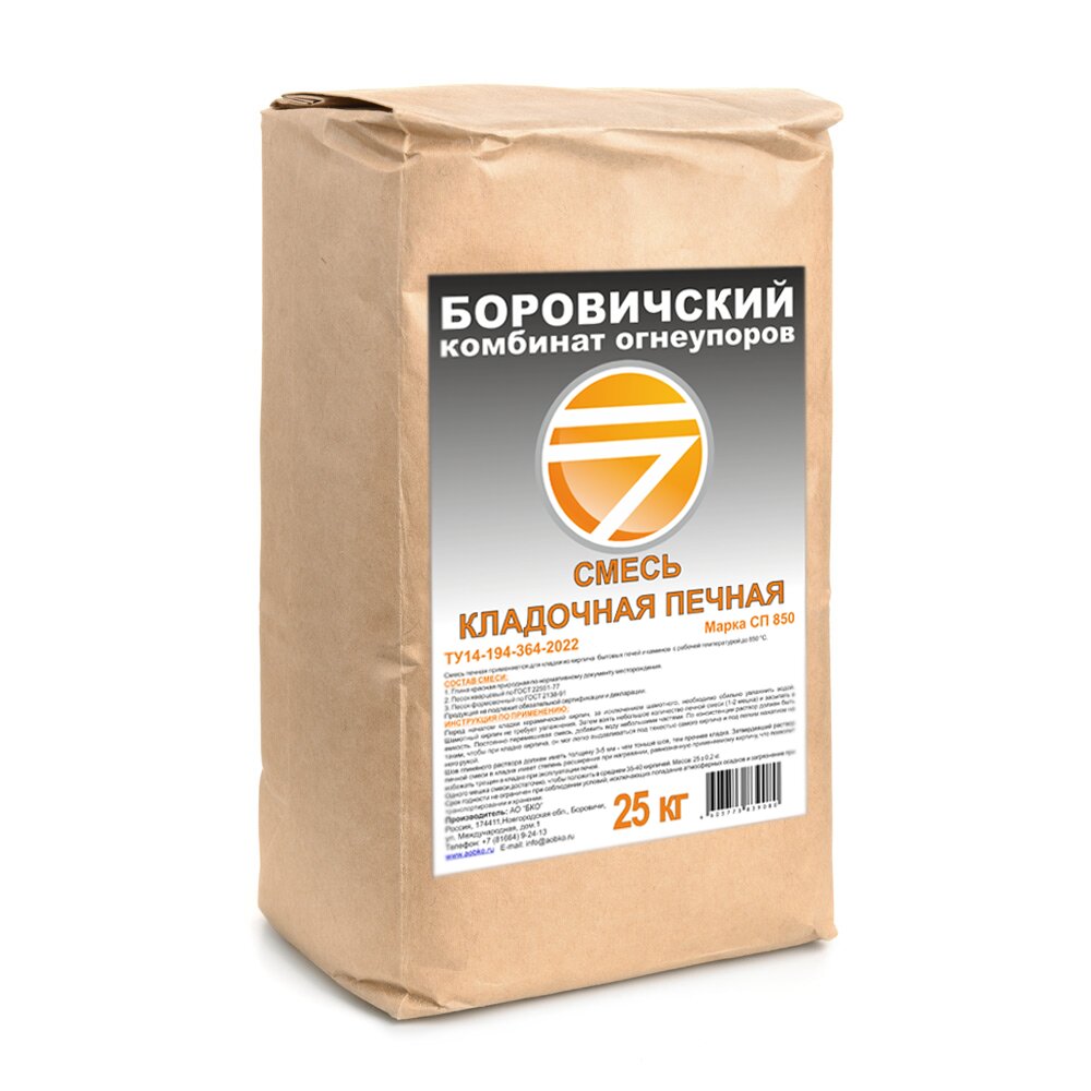 - Смесь кладочная печная СП850, вес упаковки: 25 кг.
